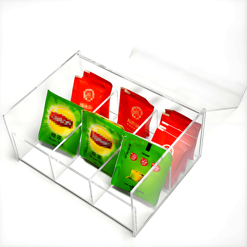 Item Name:Amazon 6 Grid Acrylic Tea gift Bag Box Desktop Clear Acrylic Tea Bag organizer Box With Cover Storage Box